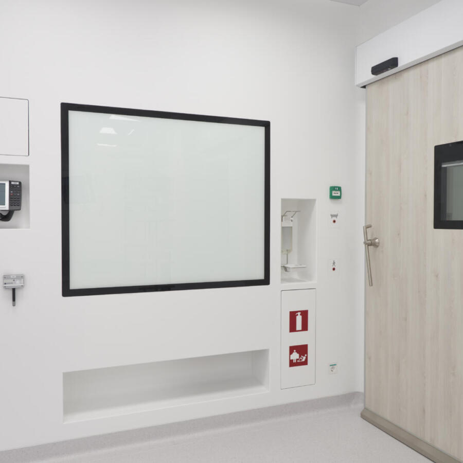 This door is very suitable for spaces in which fire-safety is paramount, such as operating rooms, intensive care, X-ray rooms, pharmacies and the emergency room.